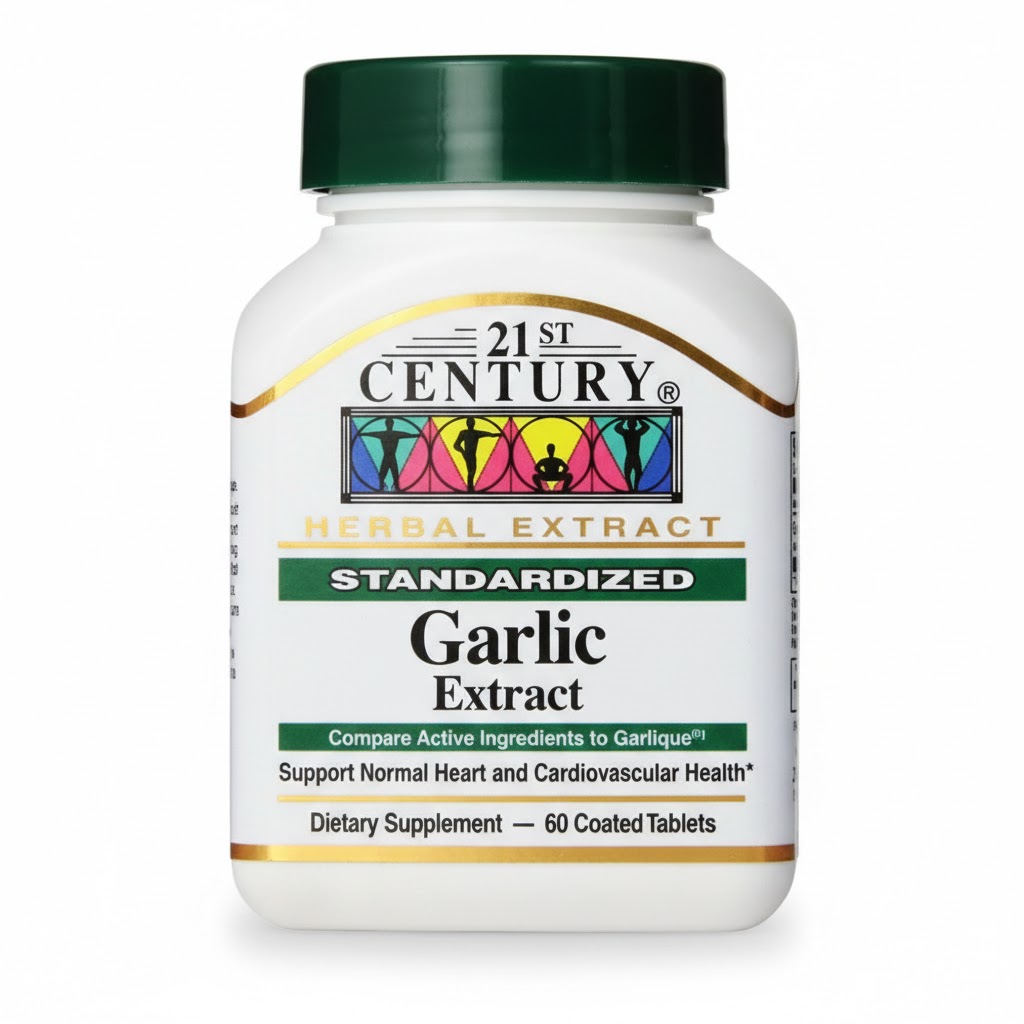 21st Century Garlic Extract Tablets are formulated to provide the benefits of garlic in a convenient daily supplement. Garlic has traditionally been used to support cardiovascular health and general wellness as part of a balanced diet and healthy lifestyle.