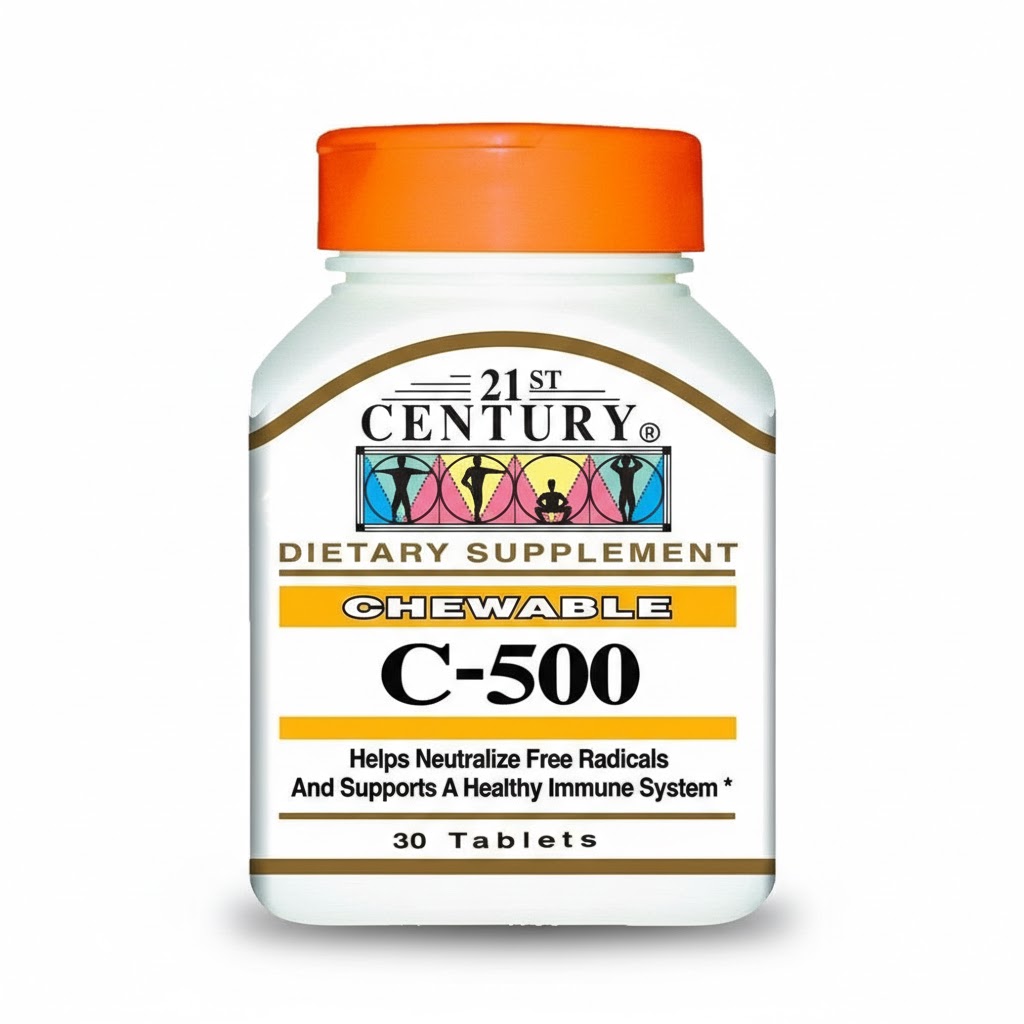 21st Century Vitamin C 500 mg Chewable Tablets provide a convenient way to support daily vitamin C intake, an essential nutrient that contributes to normal immune system function and antioxidant protection. The chewable format makes supplementation easy and enjoyable, without the need for water.