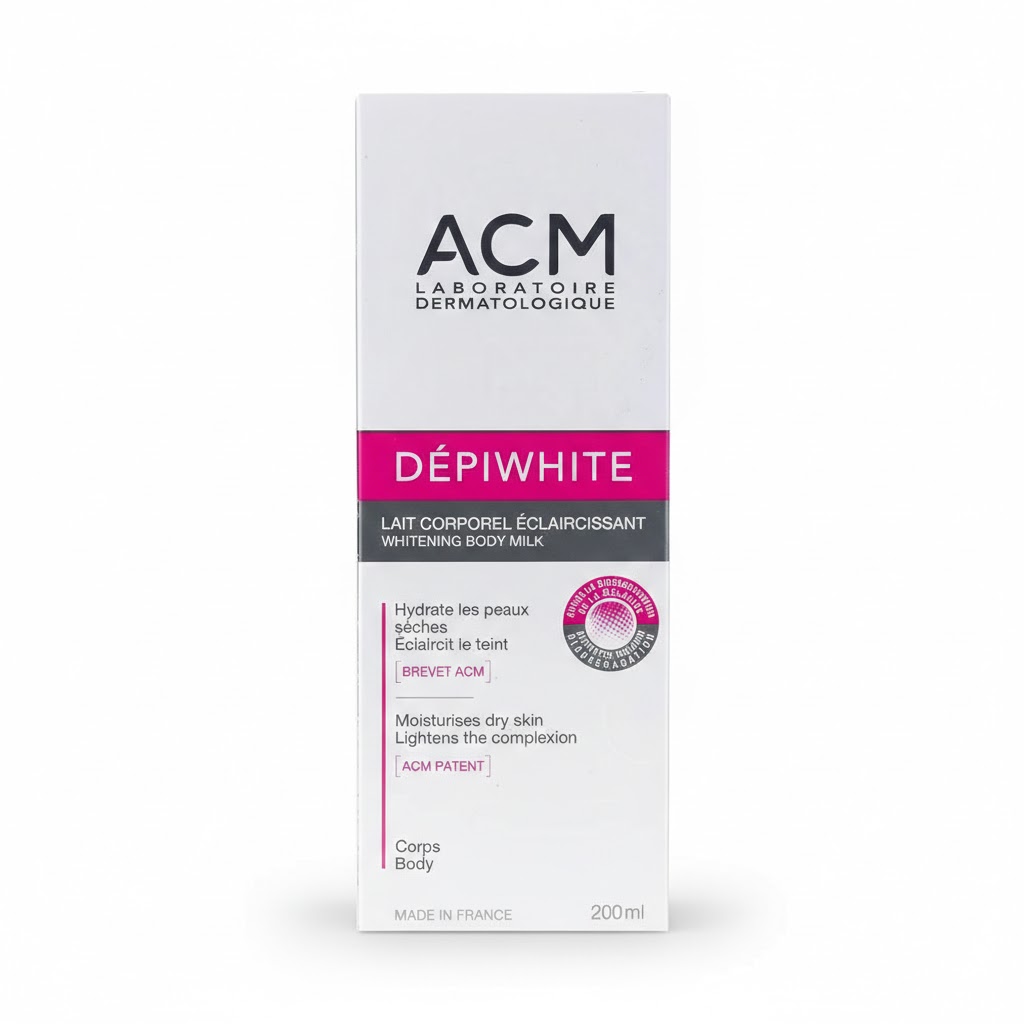 ACM Depiwhite ACM Depiwhite Body Milk is a hydrating body lotion formulated to help even skin tone and improve skin brightness. Enriched with gentle brightening agents and moisturizing ingredients, it nourishes the skin while promoting a more radiant, uniform appearance.