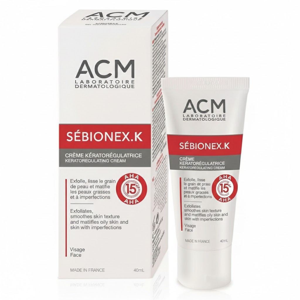 ACM Sebionex ACM Sebionex K Cream is a lightweight moisturizer specifically formulated for oily and combination skin. Enriched with sebum-regulating and soothing ingredients, it helps control excess shine, minimize the appearance of pores, and maintain a comfortable matte finish throughout the day.
