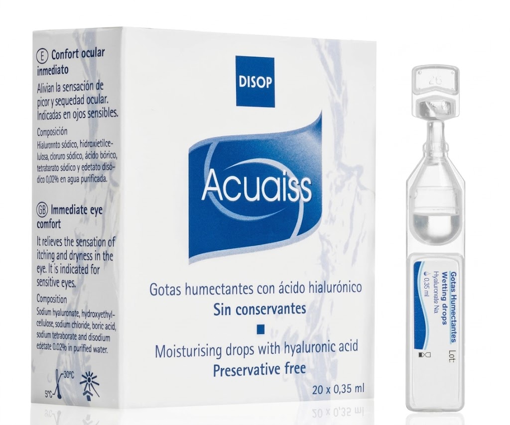 Acuaiss Eye Drops Monodose is a preservative-free ophthalmic solution designed to provide gentle and effective relief for dry, irritated, or sensitive eyes. Each pack contains 20 single-use vials of 0.35ml, ensuring maximum hygiene and eliminating the risk of contamination.