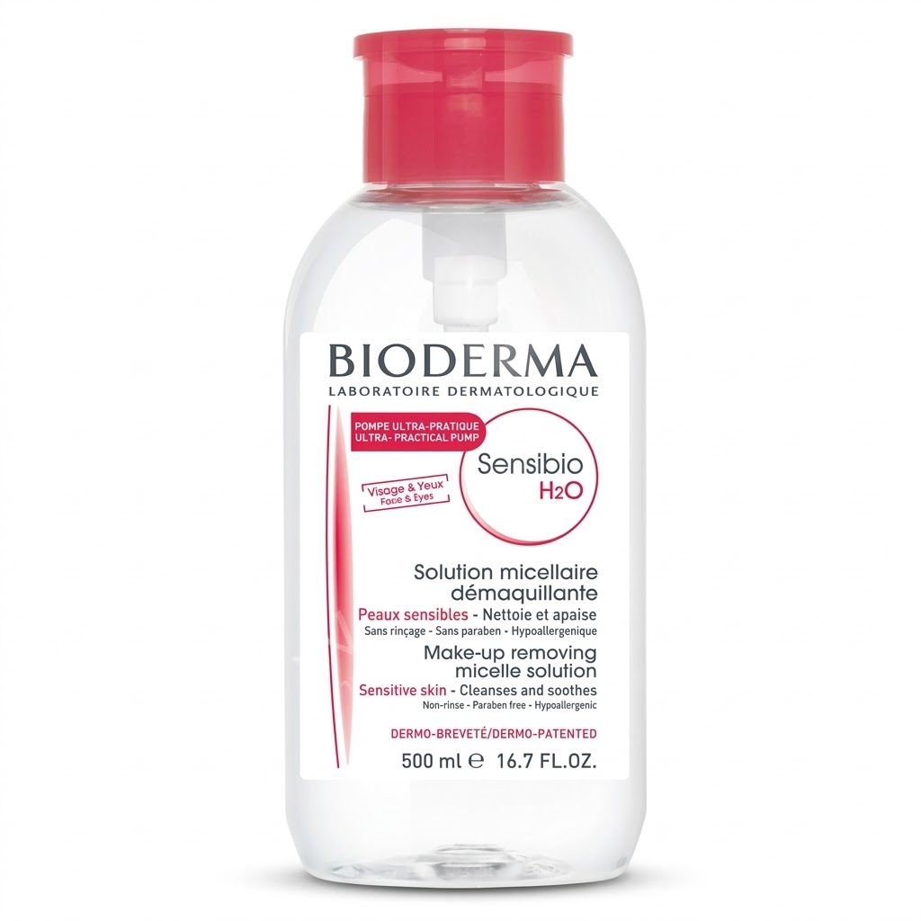 Bioderma Sensibio H2O Micellar Cleansing Water 500 ml is an iconic, dermatologist‑tested cleansing solution formulated specifically for sensitive and reactive skin. Using advanced micellar technology, it gently dissolves and removes makeup, dirt, oil, and daily impurities from the face and eyes without irritating the skin or disrupting its natural balance. The fragrance‑free, alcohol‑free formula respects the skin’s physiological pH and helps preserve the natural protective barrier, leaving skin clean, soothed, and refreshed with minimal effort. Suitable for daily use as part of your morning and evening skincare routine, this no‑rinse solution simplifies cleansing while ensuring high tolerance for delicate skin types