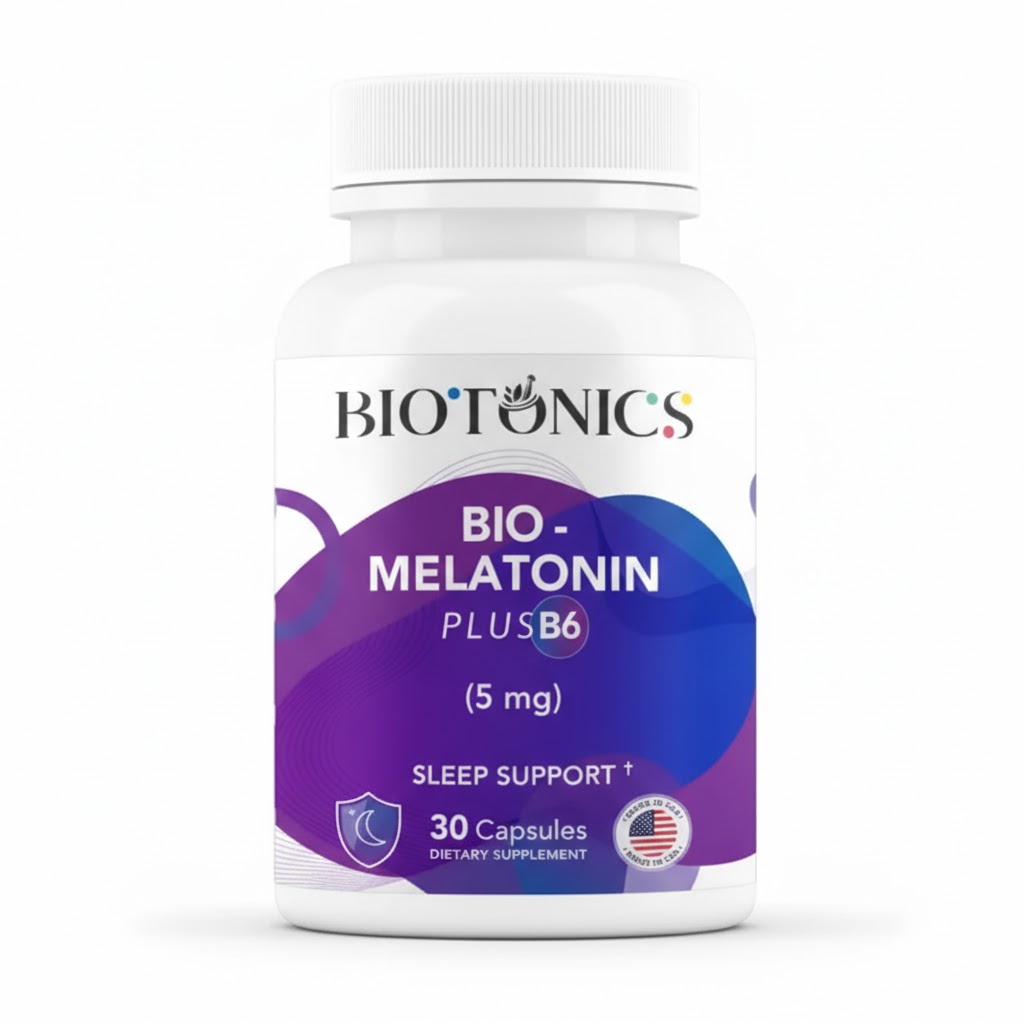 Biotonics Bio Melatonin Plus B6 is a sleep support supplement formulated to help adults establish and maintain a healthy sleep‑wake cycle. Each capsule combines melatonin, a naturally occurring hormone involved in regulating circadian rhythm, with vitamin B6, which plays a supportive role in energy metabolism and the body’s production of melatonin. This blend is designed to support falling asleep more easily and achieving a more restful night’s sleep.* Suitable for individuals experiencing occasional sleeplessness, disrupted sleep patterns, or those adjusting to new schedules. Take one capsule approximately 30 minutes before bedtime or as directed by a healthcare professional. Always read the label and directions for use.