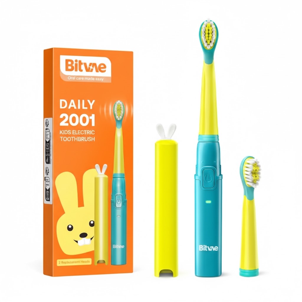 The Bitvae 2001 Kids Electric Toothbrush in Green is specially designed to support healthy brushing habits for children. Using gentle sonic vibration technology, it helps remove plaque effectively while being soft on young teeth and gums.