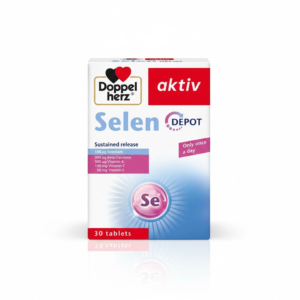 Doppelherz Aktiv Selen Depot Tablets are designed to support antioxidant protection and maintain a healthy immune system. Selenium, an essential trace element, contributes to the protection of cells from oxidative stress, supports thyroid function, and promotes overall wellbeing.