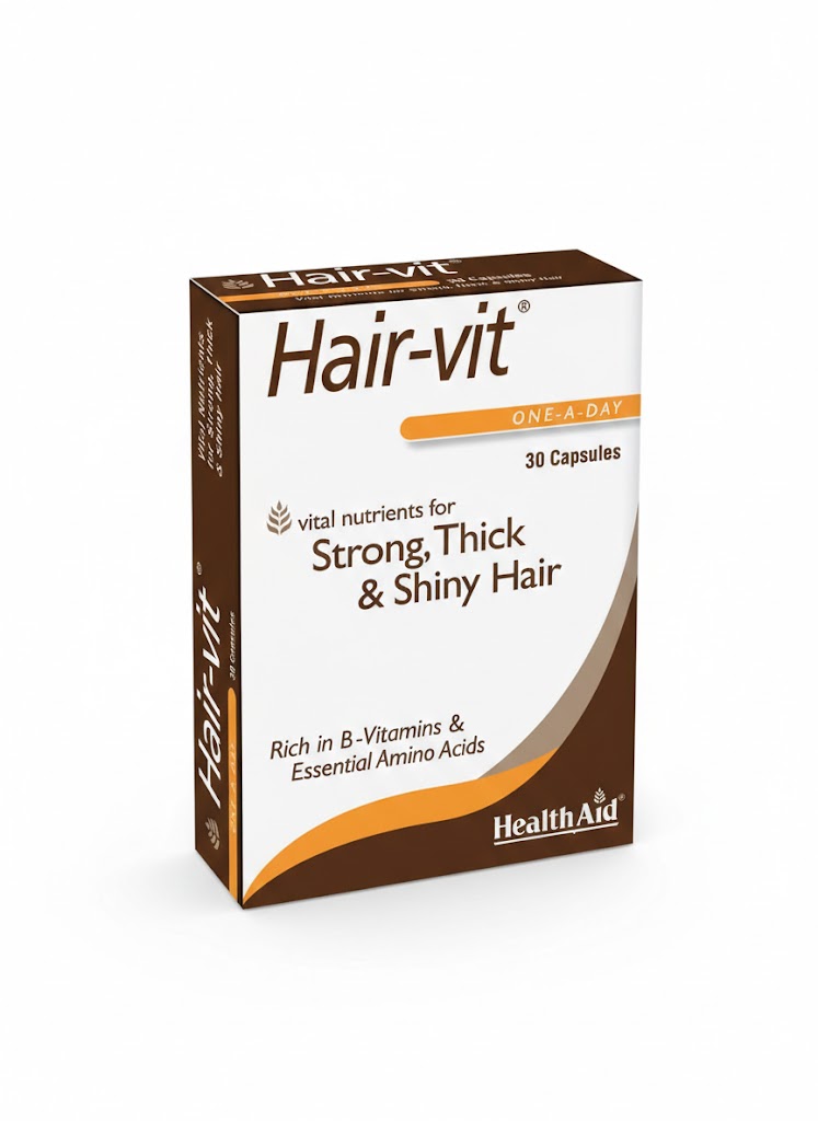H-AID Hair-Vit One A Day Capsules are formulated to support healthy hair growth and strength. The supplement combines essential vitamins, minerals, and nutrients that contribute to normal hair structure and overall hair wellness.
