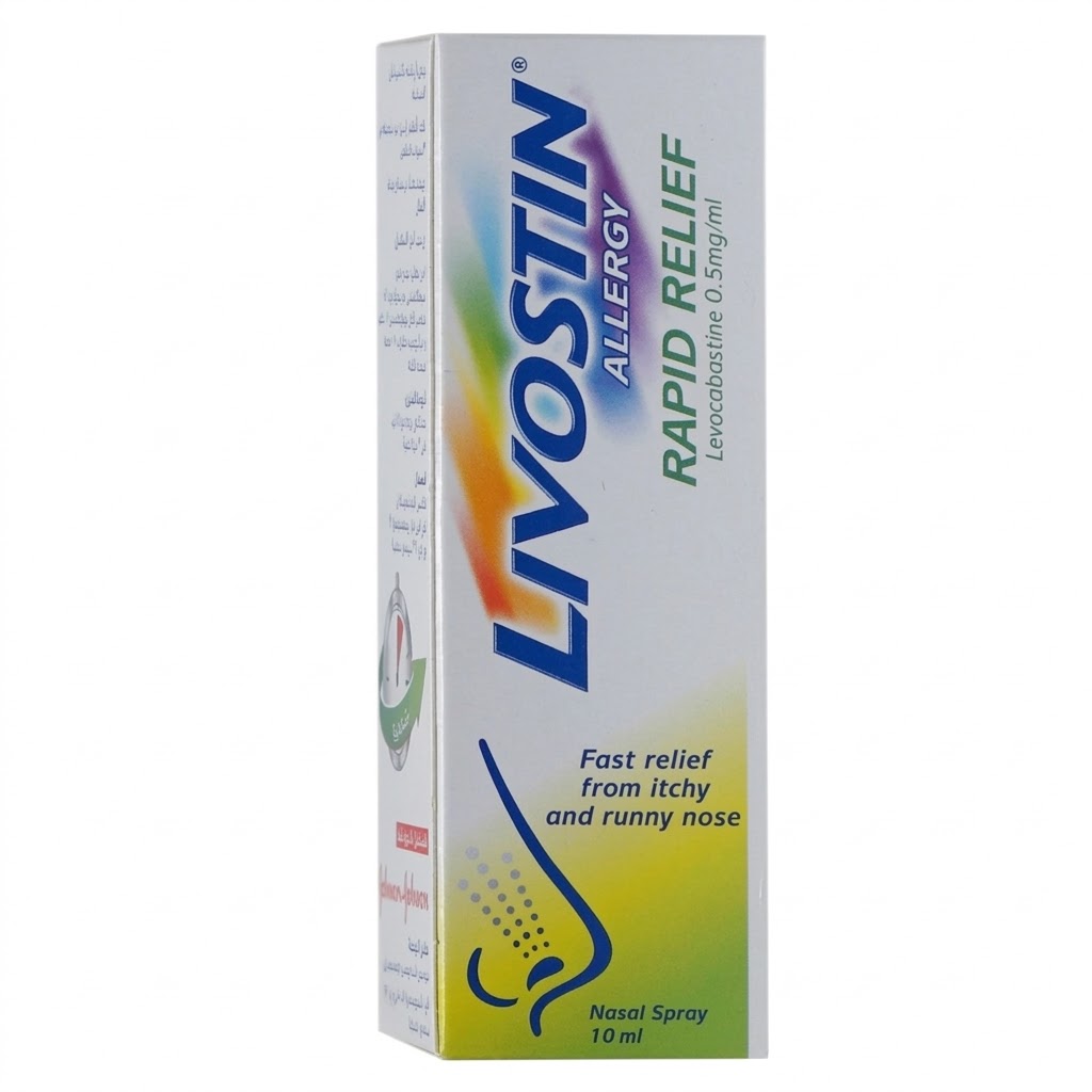 Livostin Rapid Relief Nasal Spray contains Levocabastine, a selective antihistamine that provides quick relief from symptoms of allergic rhinitis. It works by blocking histamine receptors in the nasal passages, helping to reduce sneezing, itching, and runny nose.