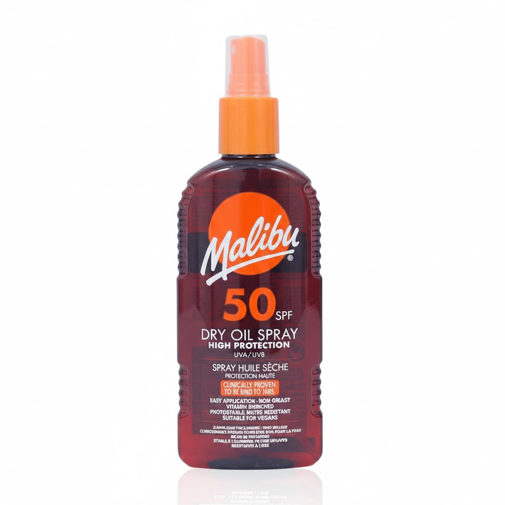 Malibu Sun Malibu Dry Oil Spray SPF 50 offers broad-spectrum sun protection in a lightweight, non-greasy formula. Designed for both face and body, this high SPF spray shields skin from harmful UVA and UVB rays while keeping it hydrated and soft.