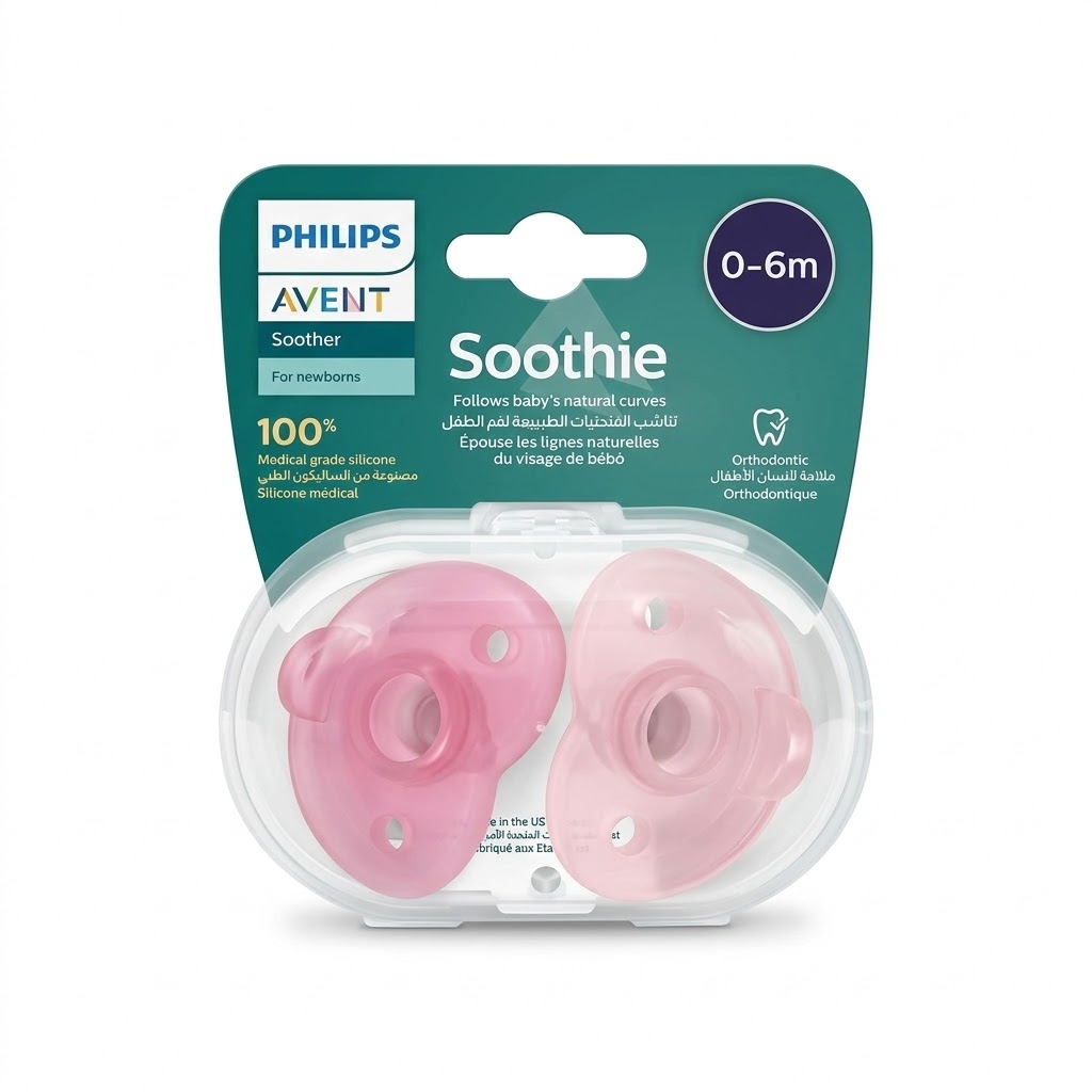 The Philips Avent Silicone Soother 0–6 Months is designed to gently comfort newborns while supporting natural oral development. Made from soft, medical-grade silicone, these pacifiers are durable, odorless, and easy to clean.