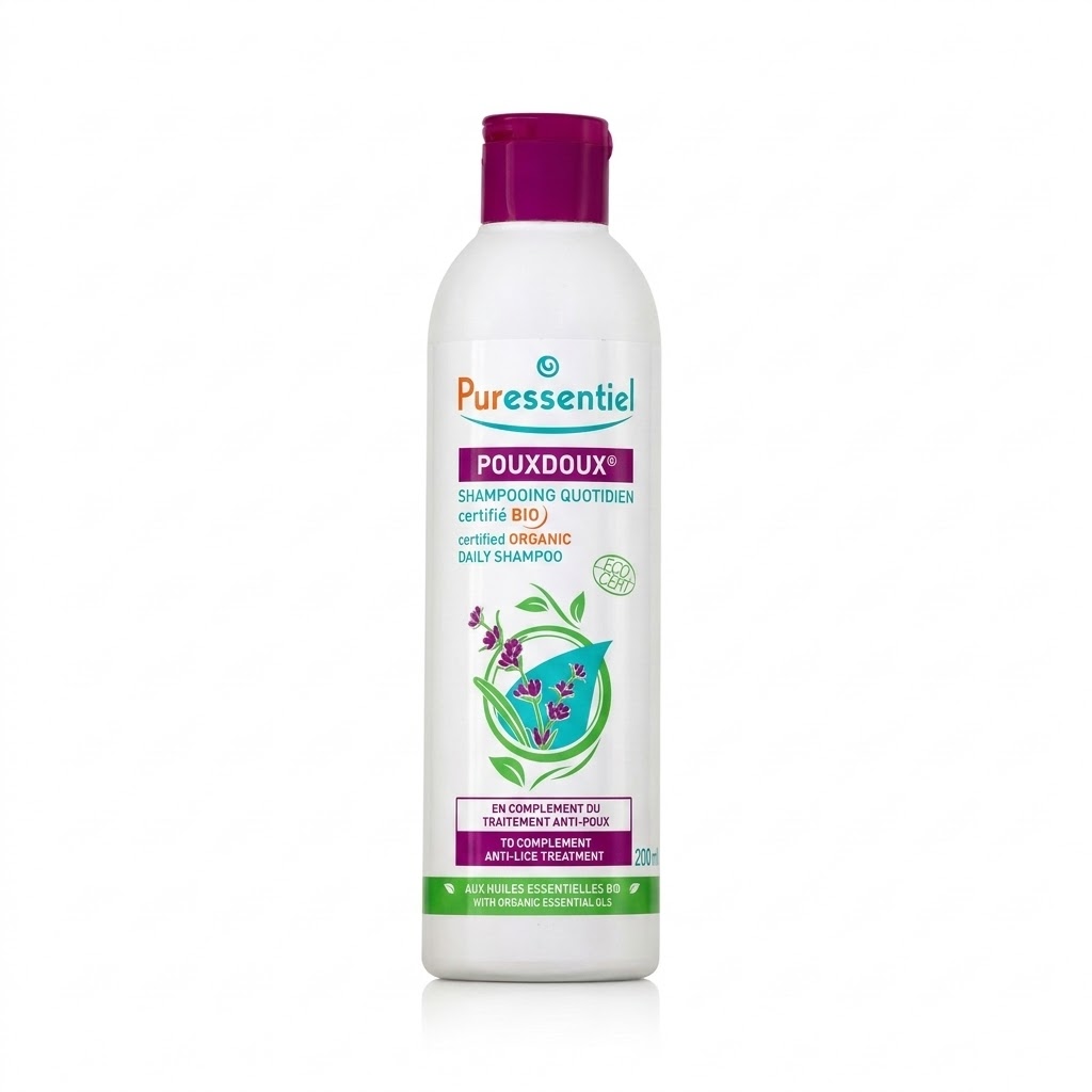 Puressentiel Pouxdoux Organic Anti‑Lice Shampoo 200ml is a gentle, plant‑based shampoo formulated to cleanse the scalp and support the removal of dead lice and nits as part of a comprehensive anti‑lice routine. Enriched with a blend of organic essential oils including lavender, lavandin, ylang‑ylang, and geranium, this shampoo helps soothe the scalp and promote natural hygiene while leaving hair soft, shiny, and pleasantly fragranced.