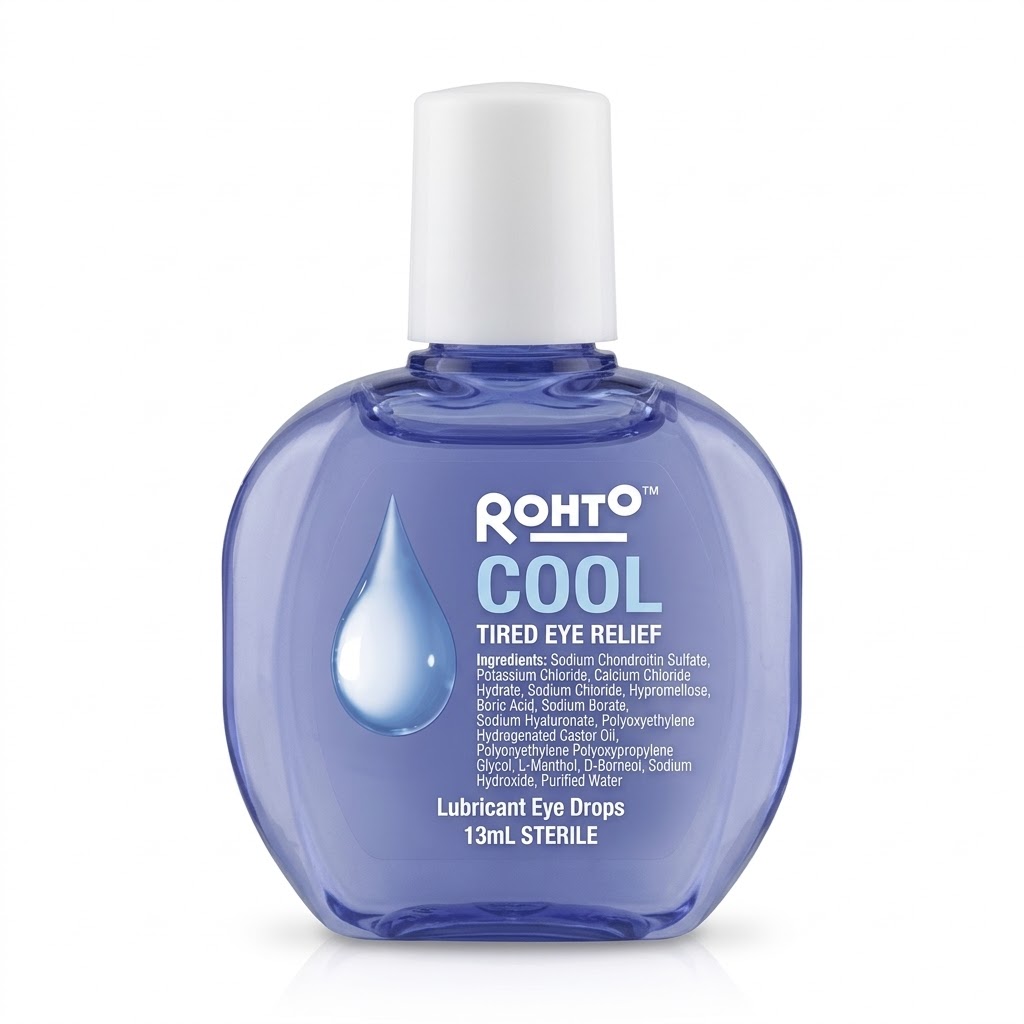 Rohto Cool Eye Drops is a refreshing ophthalmic solution designed to provide instant cooling relief for tired, strained, or mildly dry eyes. Its fast-acting formula delivers a soothing sensation that helps reduce eye fatigue, especially after prolonged screen use, reading, or exposure to dry environments.