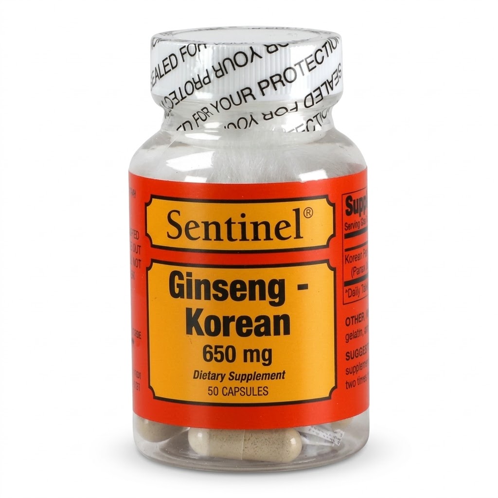 Sentinel Korean Ginseng 650 mg Tablets provide a potent dose of Korean ginseng extract, a natural herbal supplement traditionally used to support energy, vitality, and mental focus. Ginseng is valued for its adaptogenic properties, which may help the body cope with everyday stress and support overall wellness.