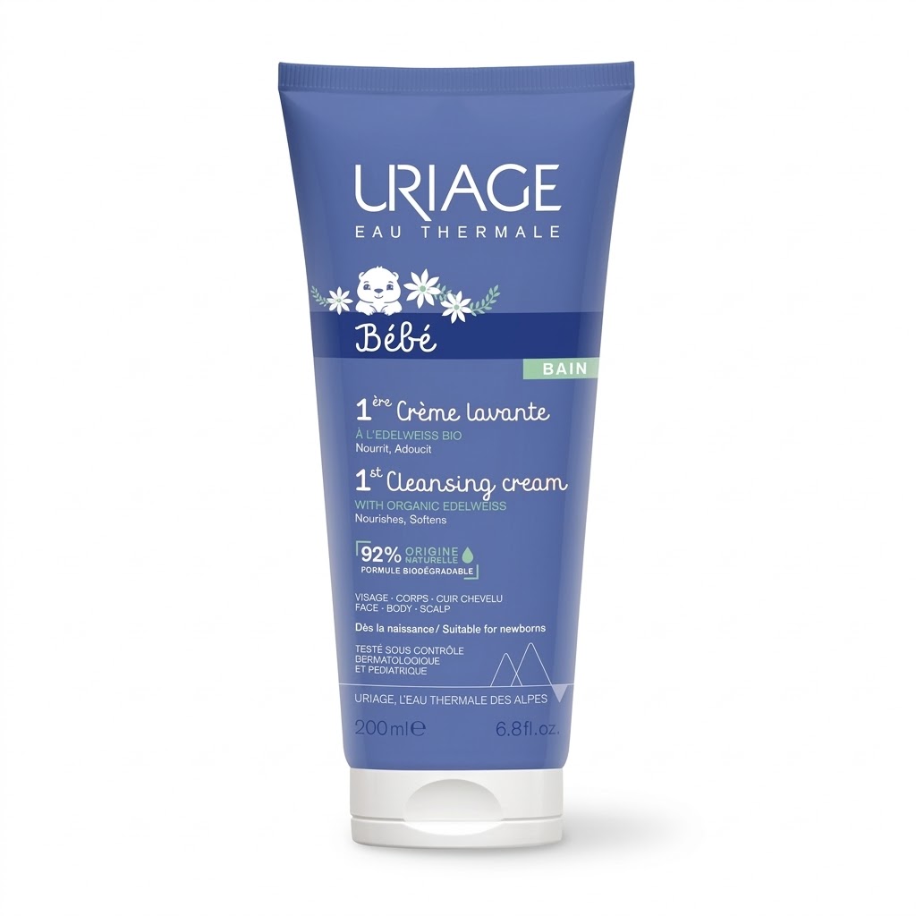 Uriage Baby 1st Cleansing Cream is a mild, soap-free cleanser designed for newborns and delicate baby skin. Enriched with Uriage Thermal Water and gentle moisturizing agents, it cleanses without causing dryness or irritation. Its soft, creamy formula maintains the skin’s natural balance, leaving it comfortable, hydrated, and protected. Ideal for daily use from birth onwards.