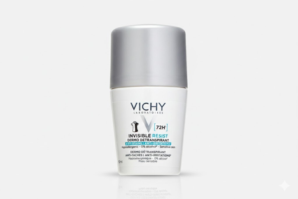 Vichy Invisible Resist 72H Deodorant for Women offers long-lasting protection against sweat and odor while keeping underarms dry and comfortable for up to 72 hours. Its innovative formula is designed to prevent white marks on dark clothing and yellow stains on light fabrics, ensuring confidence and freshness throughout the day.