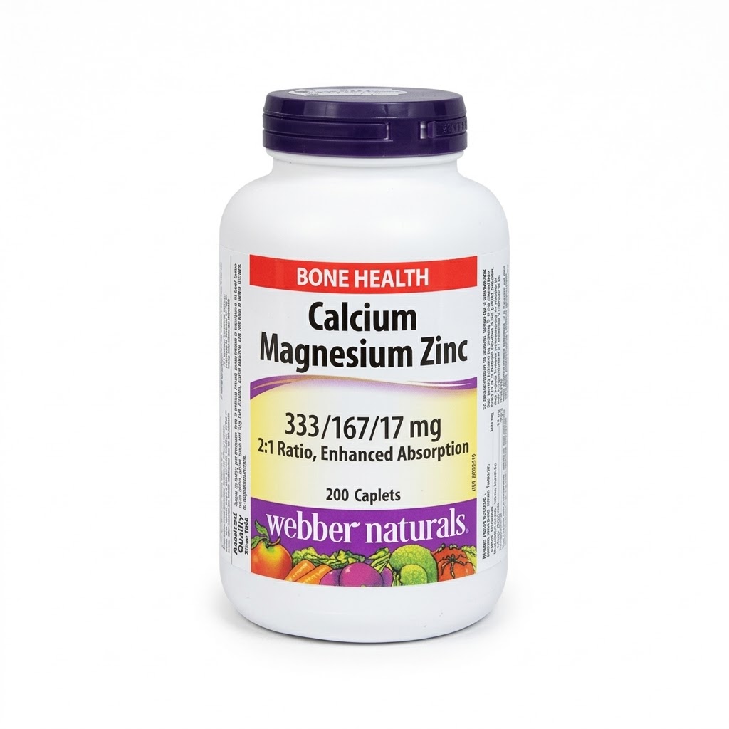 Webber Naturals Calcium Magnesium Zinc Capsules – 200 Count Bone & Immune Support Formula